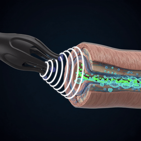Le stress acoustique déclenche la libération de VEGF et FGF-2, initiant l'angiogenèse—la croissance de nouveaux vaisseaux sanguins dans le tissu pénien. L'échographie Doppler confirme une augmentation de 45-60% de la vélocité du flux sanguin, avec des résultats persistant 12+ mois.